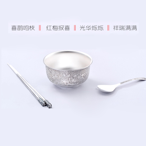 喜鵲鳴枝 紅梅報春 流年往夕 喜氣滿滿而至 朝飲夕食 餐餐皆珍惜 杯盤碗盞 梅鵲憑添喜 光華灼灼 滋養(yǎng)安康好身體